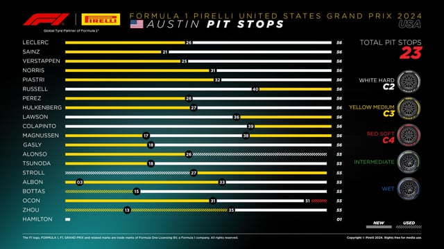 Через погані погодні умови тоді неможливо було повністю оцінити вплив такого вибору на стратегію, тому Остін може стати першим реальним тестом. Вибір жорсткішого складу C1 відрізняється від торішньої американської гонки, тоді як C3 і C4 залишилися без змін.