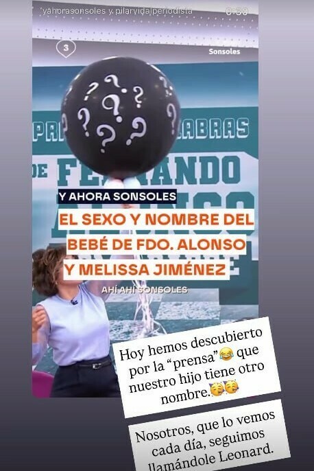 Хоча раніше іспанські медіа активно поширювали інформацію про те, що новонародженого сина назвуть на честь батька – Фернандо, 44-ріцчний пілот спростував ці чутки. Насправді він та його партнерка Мелісса Гіменес дали дитині ім’я Леонард.