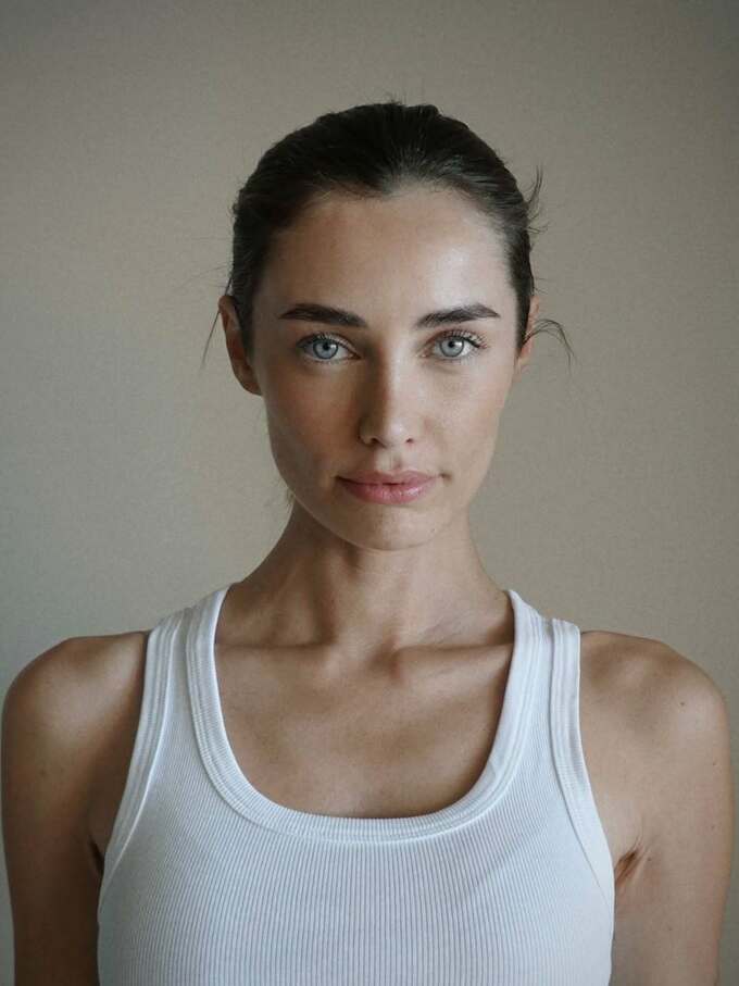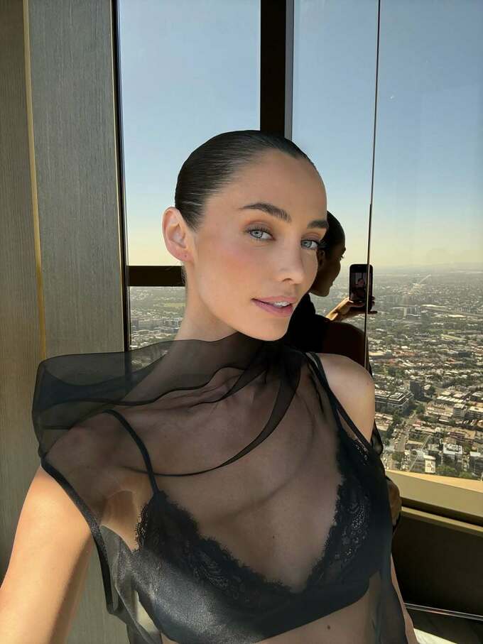 На кадрах Ребекка позує у чорному мереживному бюстгальтері та прозорій темній блузі на тлі вигляду з вікна. Також вона додала кілька знімків себе у різному вбранні, яке підкреслює її зовнішність.