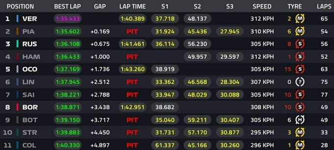 Расселл іноді розчаровує, але раціонально він за 4-5 кіл, поки стайня вирішувала, трохи підсмажив гуму у брудному повітрі та втратив частину ефективності. Ситуація аналогічна Майамі, де «червоні» довго не могли вмовити Шарля поступитись Льюїсу.