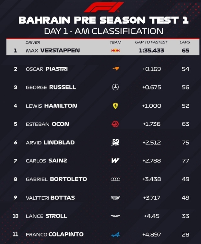 Ферстаппен проти Піастрі. Завершилася перша практика Ф1 у Бахрейні Пілот Ред Булл очолив залік першої сесії