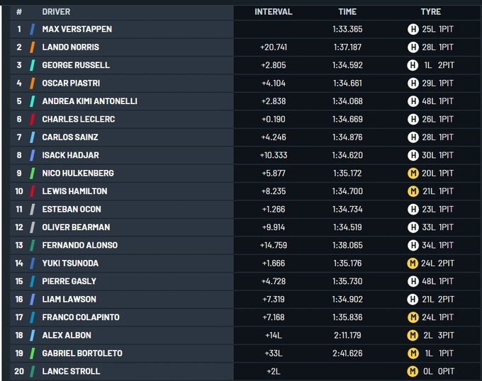 • noteyu:   Піастрі летить до свого першого титулу. А Леклеру конкретно підфартило з автомобілем безпеки та хардом у Ферстаппена.