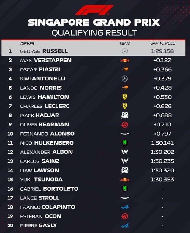 Неймовірне коло Мерседеса. Відбулася кваліфікація Гран-прі Сінгапуру