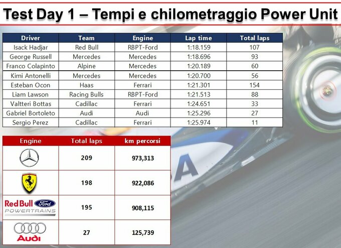 Перший день тестів Ф1. Мерседес і Хаас лідирують, в Ауді проблеми Який пробіг кіл у кожної команди