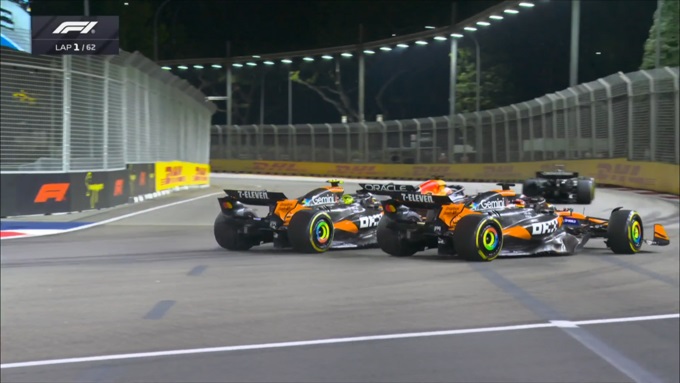 Чергова драма між напарниками по Макларену трапилася на старті, коли Норріс, стартуючи п'ятим, пішов у агресивну атаку на Піастрі і пройшов його з контактом. Це викликало негативні емоції Оскара, але команда пообіцяла зробити розбір моменту після етапу.