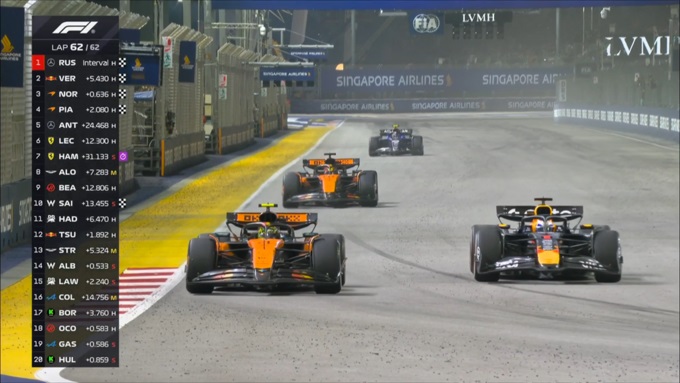 Расселл красиво переміг на Гран-прі Сінгапуру, драма Норріса і Піастрі