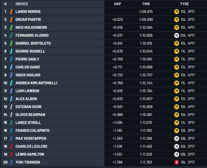Одного разу графіка Ф1 показала битву за 18 позицію між Піастрі, Норрісом та Алонсо. Тролі.