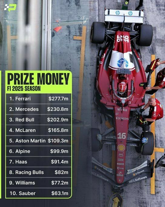 Відомо, скільки виплатили командам Ф1 за 2025 рік. Чемпіони поза топ-3 Феррарі стала лідером виплат завдяки «історичному бонусу»