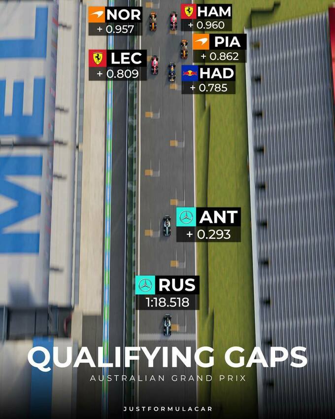 Візуалізація відривів у кваліфікації Гран-прі Австралії 2026 Джордж Расселл завоював поул із перевагою в 0.293 секунди