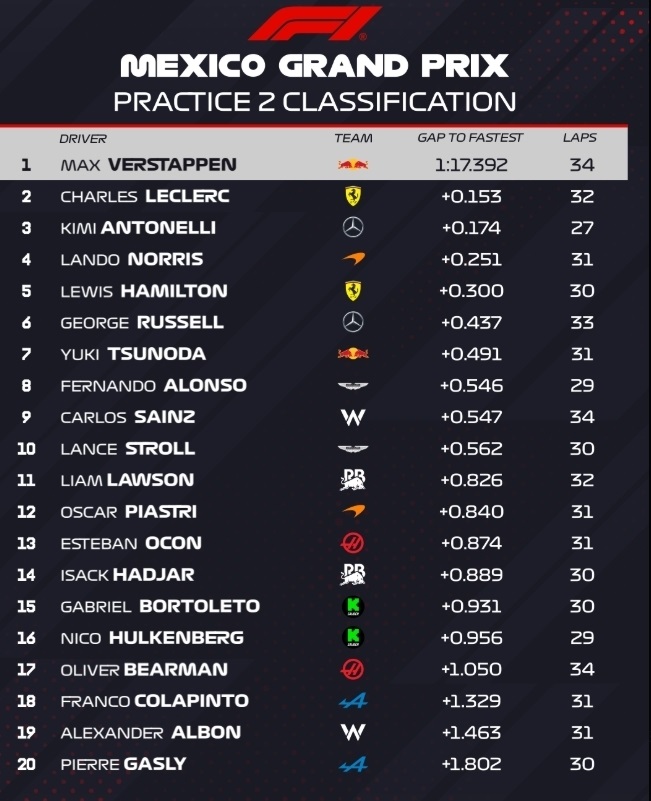 Друга практика у Мексиці: Ферстаппен попереду Норріса, проблеми Піастрі Основні пілоти повернулися у машини