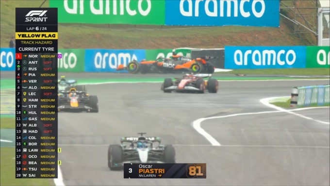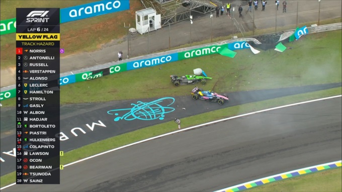 Аварія Макларен та червоний прапор. Хаос у спринті Гран-прі Бразилії спричинив мокрий бордюр Оскар Піастрі, Франко Колапінто та Ніко Гюлькенберг зійшли у спринті Гран-прі Бразилії