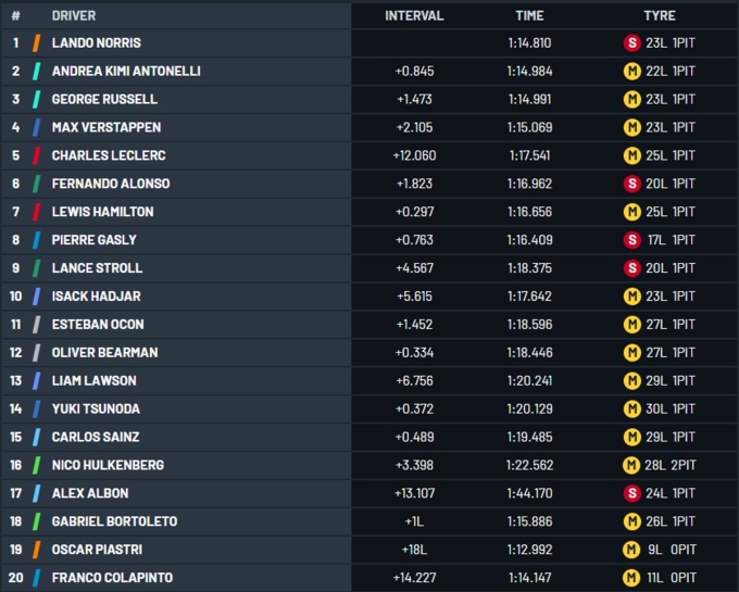 Одного разу графіка Ф1 показала битву за 18 позицію між Піастрі, Норрісом та Алонсо. Тролі.