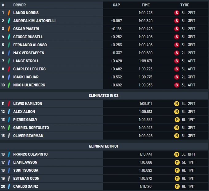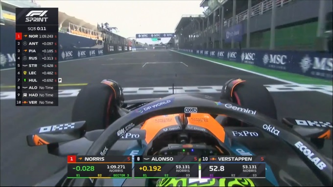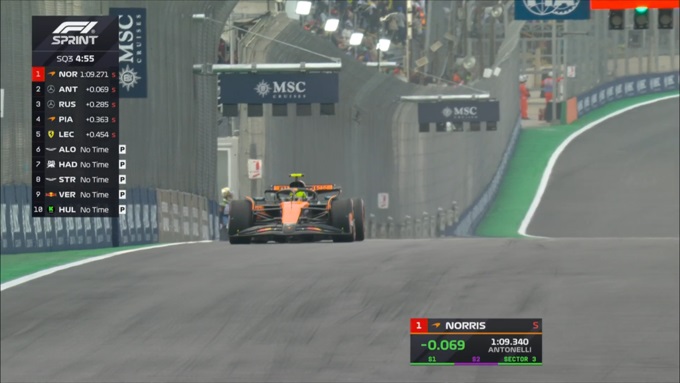Візуалізація відривів у спринт-кваліфікації Гран-прі Бразилії 2025 Ландо Норріс завоював поул із перевагою в 0.097 секунди