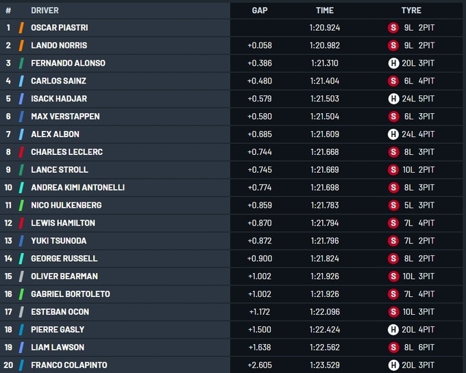 Одного разу графіка Ф1 показала битву за 18 позицію між Піастрі, Норрісом та Алонсо. Тролі.