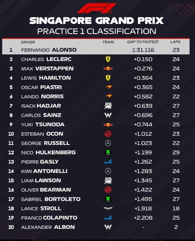 Старт Гран-прі Сінгапуру: швидкість Алонсо, червоні прапори, аварії і хаос